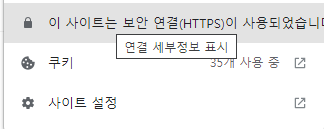 자물쇠 모양을 클릭 하게 되면 이 사이트는 보안 연결 (HTTPS)이 사용되었습니다. 라는 세부 정보를 확인 할 수 있다.![]() |