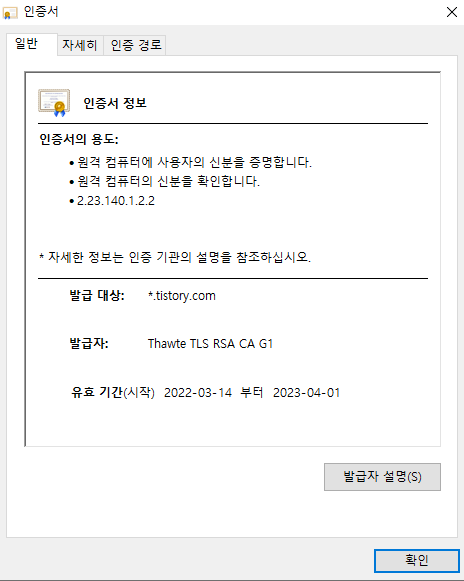 https:// 앞에 자물쇠를 클릭 하게 되면 인증서의 유효기간을 알 수 있다.![]() |